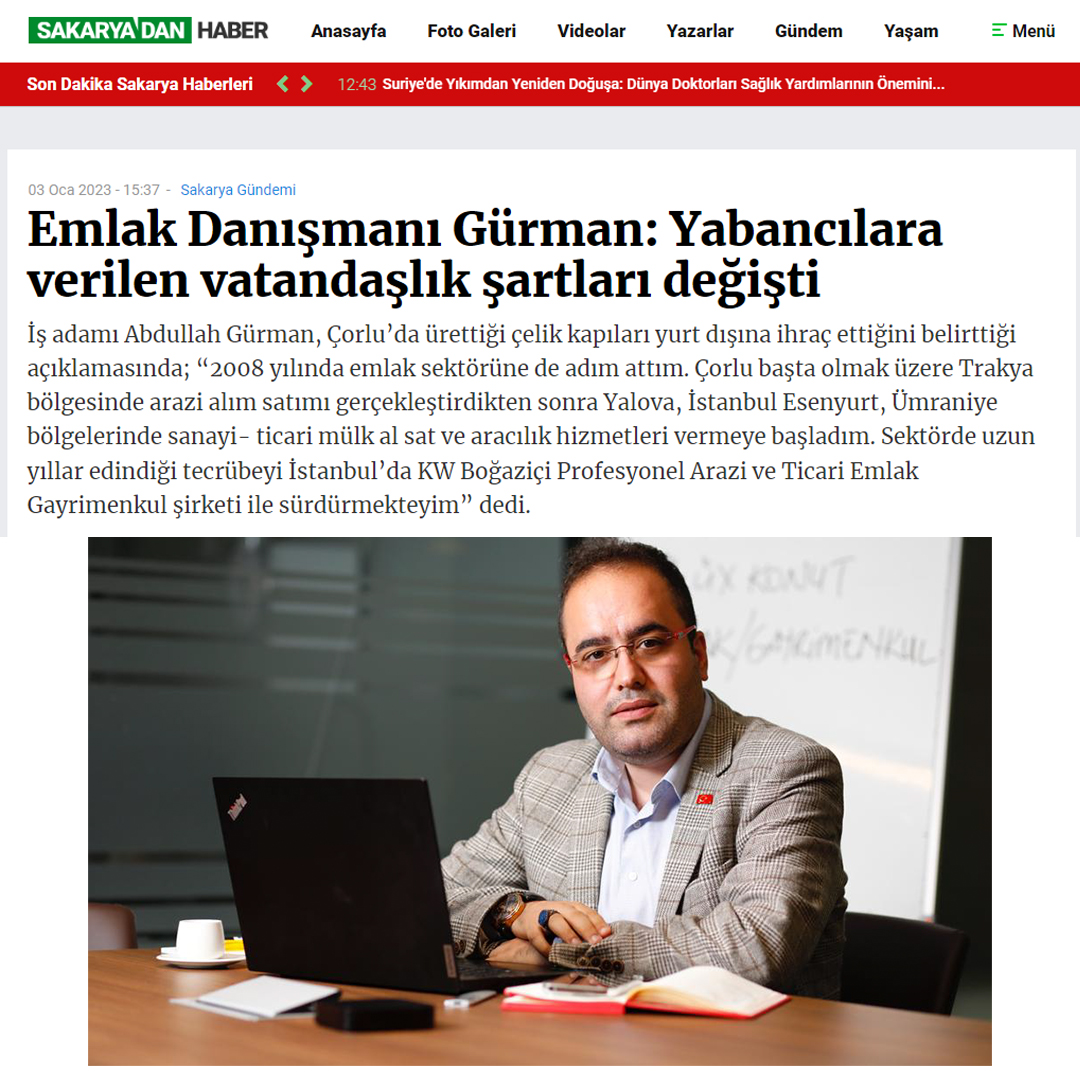 Emlak Danışmanı Gürman: Yabancılara verilen vatandaşlık şartları değişti KW Boğaziçi Profesyonel Arazi ve Ticari Emlak Gayrimenkul Danışmanı Abdullah…